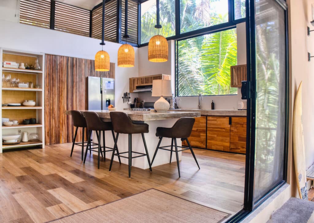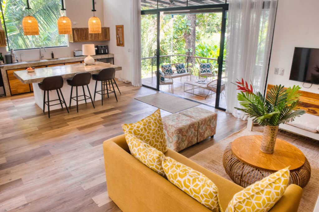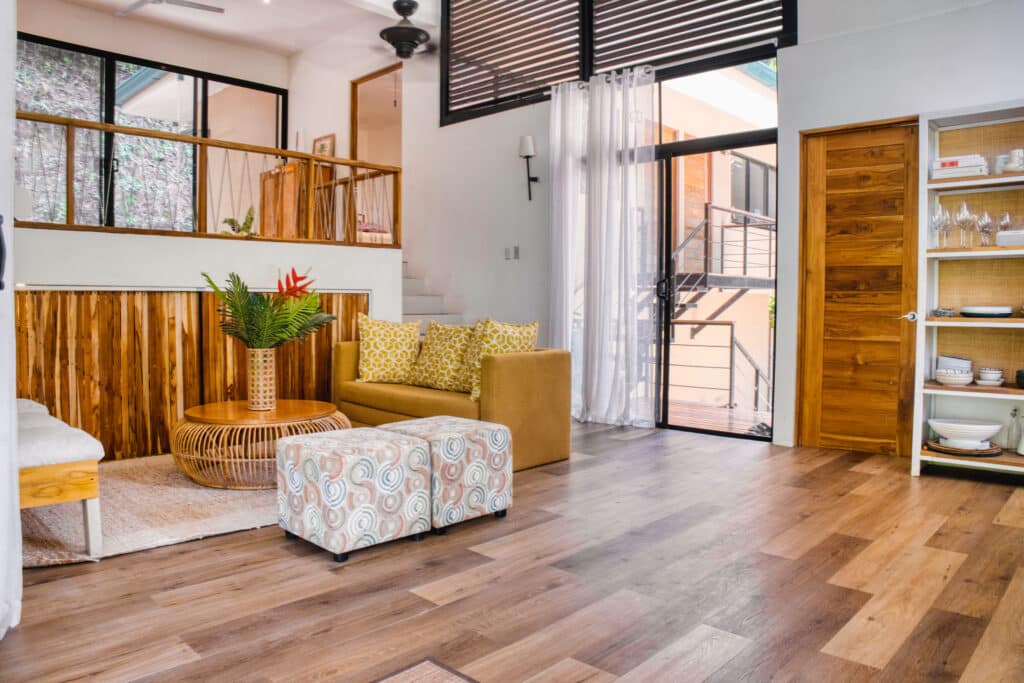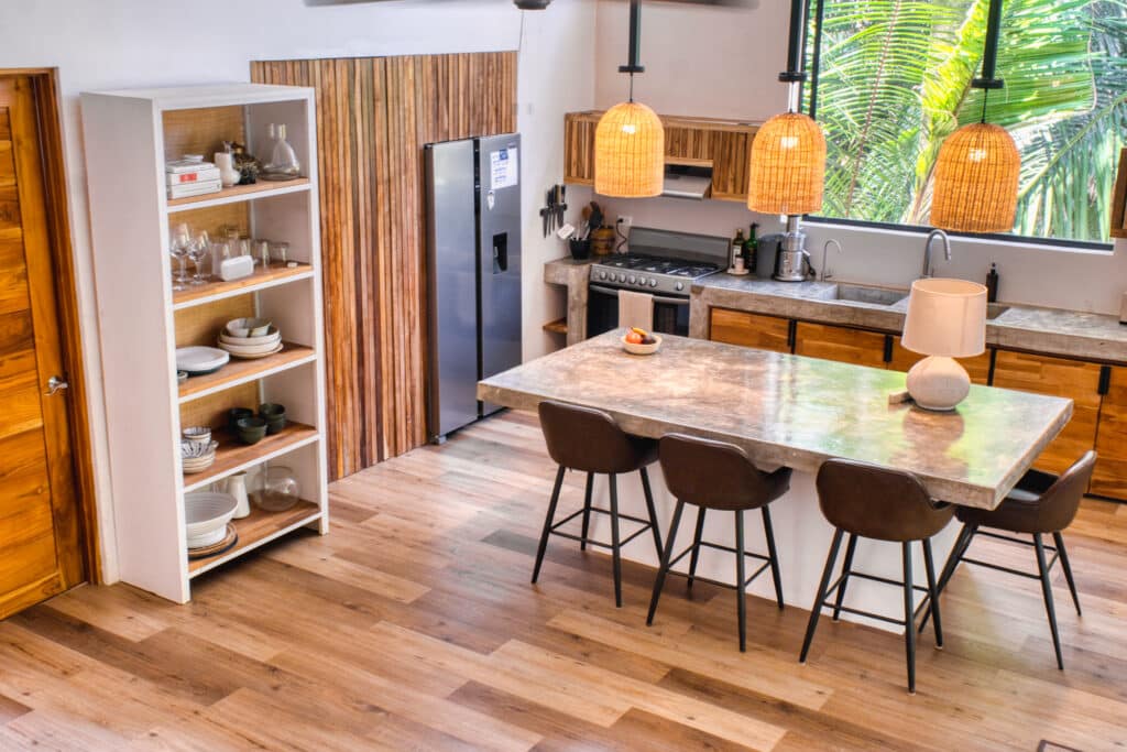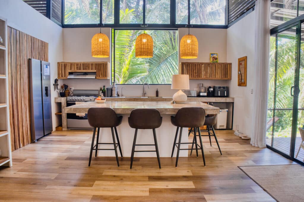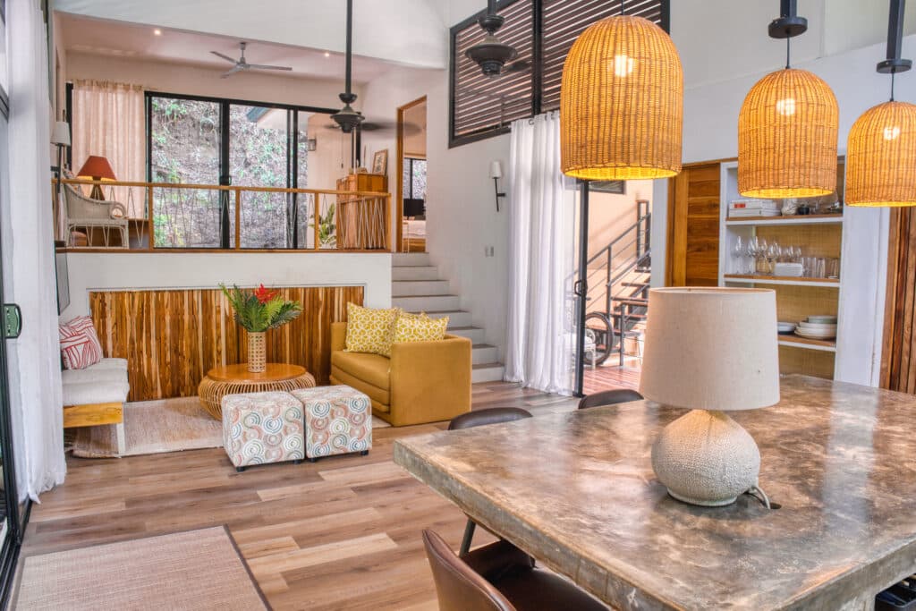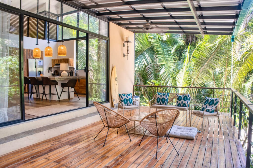 Enjoy Nosara’s beautiful climate from the large covered outdoor terrace, perfect for dining, lounging, and entertaining while taking in the surrounding jungle views and natural sounds.