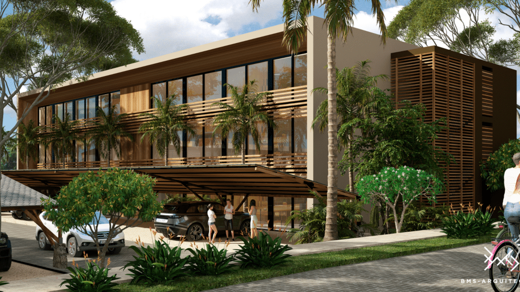 Residents enjoy access to a dedicated pool within the studio building, plus the shared amenities of the Become community: commercial plaza, gastro plaza, padel courts, gym, and co-working center. With 48 units across three floors, this building combines privacy with a vibrant community atmosphere, all in a central location near Playa Guiones.