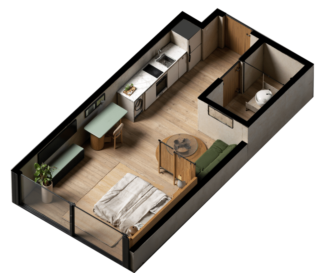 Step into modern coastal living with these fully furnished, turnkey studio apartments at Become. Each 30.8 m² studio is thoughtfully designed to maximize space, natural light, and indoor-outdoor flow. Ideal for remote work, short-term stays, or rental income, these units feature a private bathroom and kitchenette, offering a sleek, functional layout.