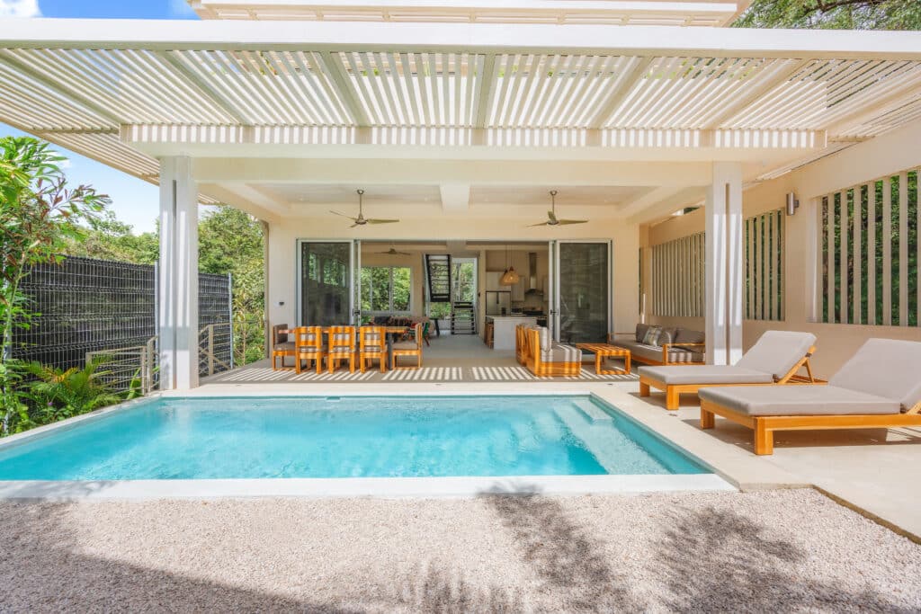 A rare advantage of this property is the included adjacent lot, which comes with a fully permitted set of plans for another 3-bedroom home plus the water letter—a major value in Nosara, where water approval is often the bottleneck for building. This means the next owner can build immediately. The permitted design could also be scaled down to create a casita, office, or smaller guest home depending on your needs.