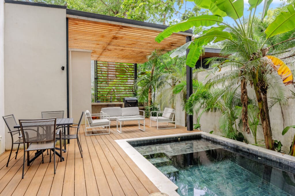 Expansive sliding doors open to the inviting pool and outdoor kitchen, creating the perfect setting for entertaining or relaxing. Each bedroom boasts an ensuite bathroom with elegant Granada tiles and direct access to the pool deck, enhancing the seamless indoor-outdoor flow. Additionally, there’s potential to add a 3rd bedroom to suit your needs.