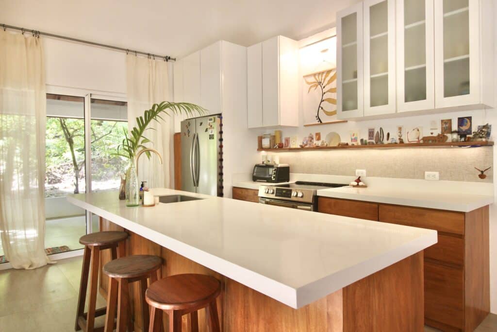 Enjoy outdoor living with a covered teak rancho, ideal for yoga, excercise, or entertaining, and a bodega with full laundry and storage. The property includes a covered carport with automatic gates and is surrounded by mature starfruit and lime trees, adding natural beauty and a taste of the tropics.
