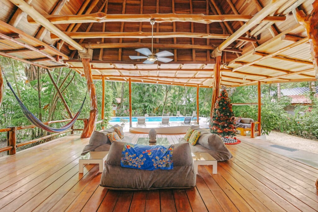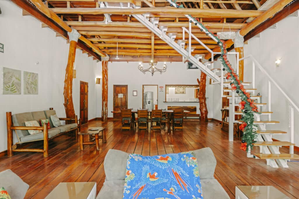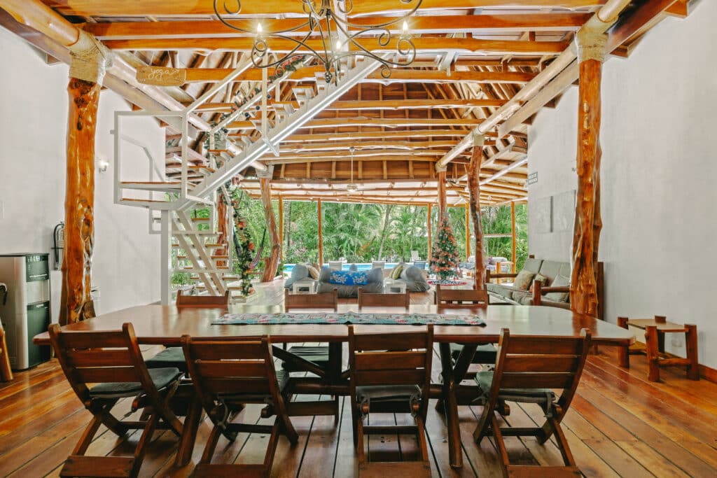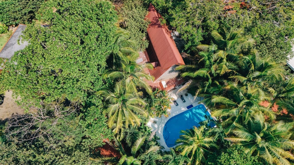 Located just 450 meters from the beach and 220 meters north of the Gilded Iguana, this 2,316 m² property offers a prime commercial opportunity in the heart of North Guiones, walkable to everything! This versatile hospitality property features 9 rooms—including two 2-bedroom units—along with a restaurant/café with seating, a front office, a large rancho kitchen, yoga deck, pool, guest kitchen, common lounge, surfboard storage, laundry room, and maintenance room.