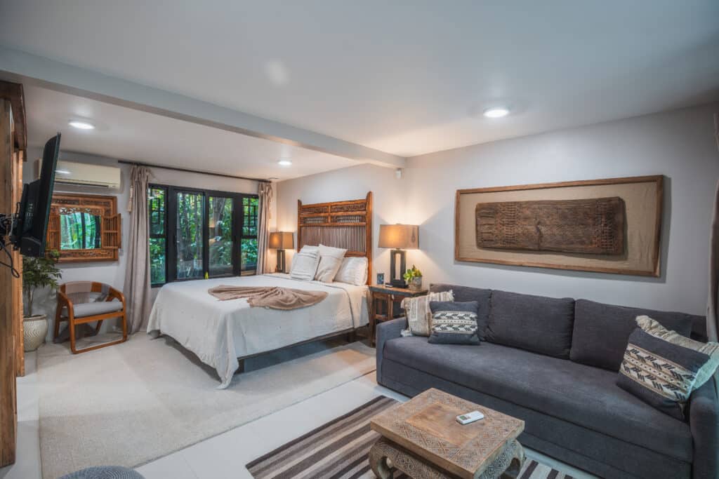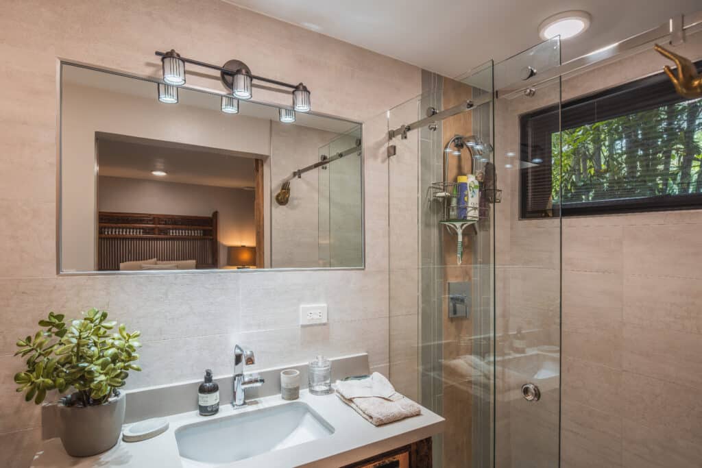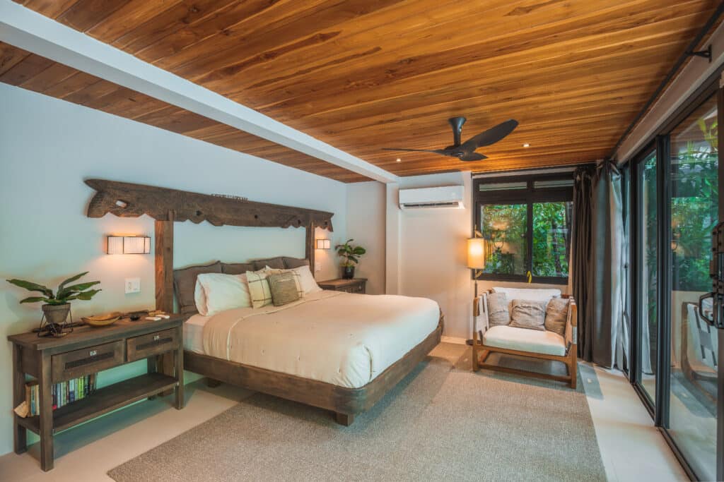 Steps from North Guiones Beach access – dawn surf to yoga glow – and Gilded Iguana’s farm-to-table vibe, it fuses seclusion with Nosara’s pulse. Stroll to one of the worlds most consistent surf break (that is just steps away), organic markets, wellness havens. This neighborhood has had a recent major upgrade of roads carefully crafted from pavers (and not asphalt), so getting around has never been easier or more convenient.